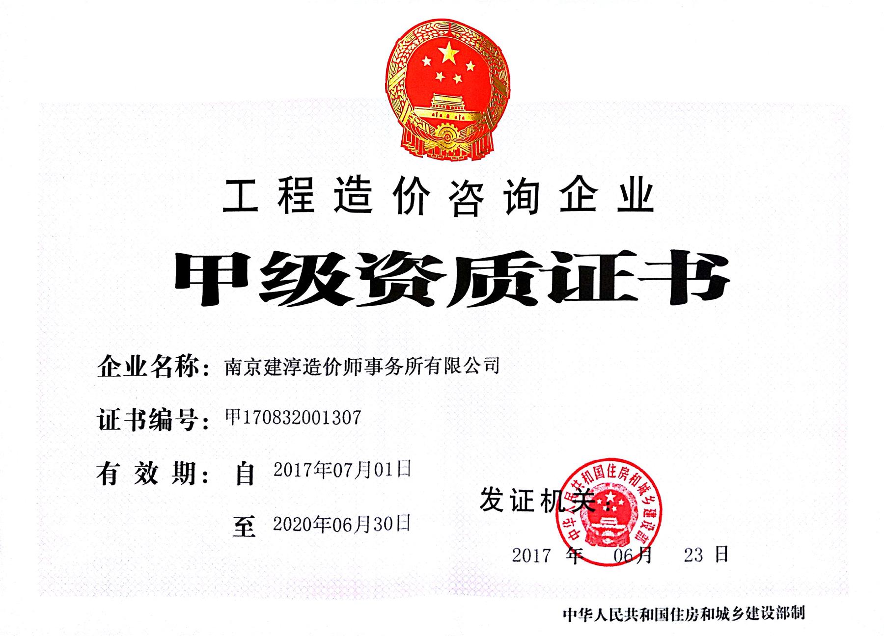 工程造價(jià)咨詢(xún)企業(yè)甲級(jí)資質(zhì)證書(shū)